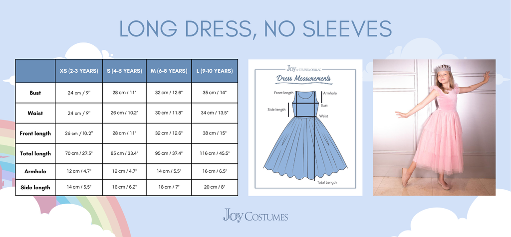 We have specially crafted our dresses keeping in mind the children who are sensory sensitive. To ensure maximum comfort, we have eliminated all tags and zippers. Additionally, we have added an extra layer of soft, non-itchy fabric over the areas where different fabrics meet. As always, there is no glitter mess to worry about; this dress is perfect for imaginative play.